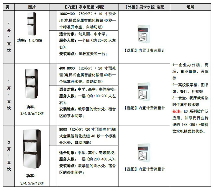 ----》典型機(jī)型:ER-42、ET-43、EW-44、EW-46,可滿足中小學(xué)課間操集中供應(yīng)大流量的溫度適宜的直飲水,符合政府校園直飲水項(xiàng)目的各技術(shù)指標(biāo)